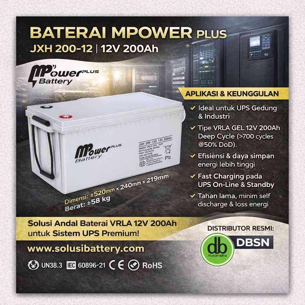 🧩 Baterai UPS Mpower JXH 200-12: Solusi Daya Andal untuk UPS, PLTS, dan Telekomunikasi