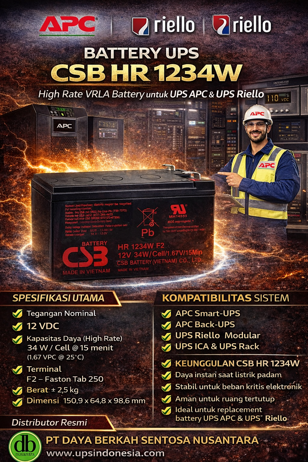 💡 Dapatkan Baterai UPS CSB HR1234W original bergaransi resmi hanya dari distributor terpercaya CSB Battery Indonesia.